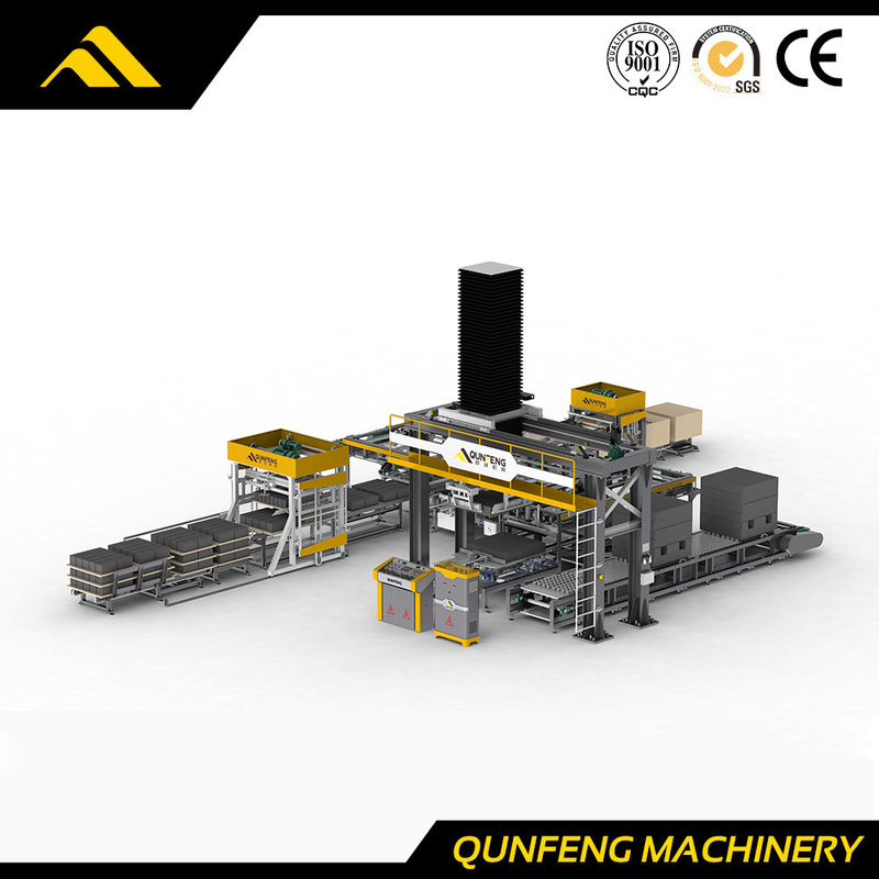 Utilisation optimisée de l'espace :L'unique configuration en position haute permet une meilleure accessibilité et fluidité au sein de la zone de production. Il organise efficacement les blocs durcis en piles carrées, maximisant ainsi la densité de stockage dans votre cour.