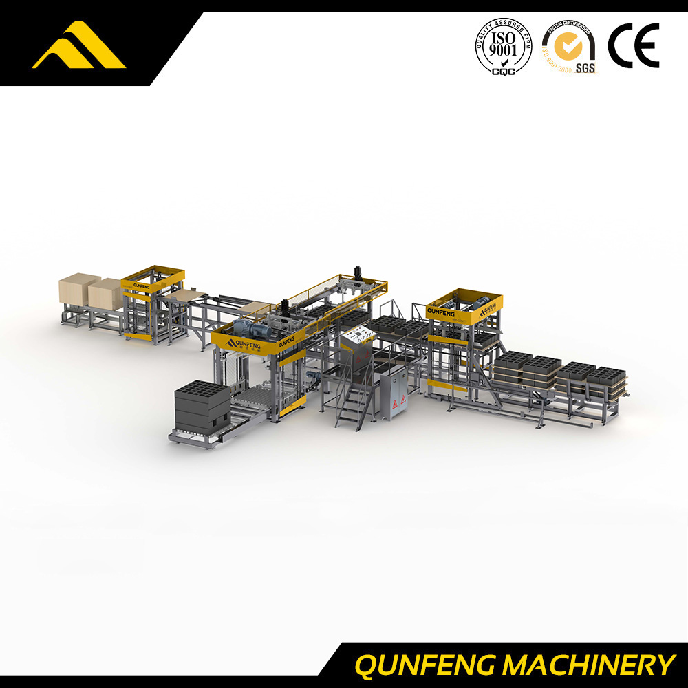| Taille de la palette | (850-1250) × (680-950) mm | Compatibilité universelle : s'adapte à une gamme flexible de tailles de palettes, permettant une mise à niveau transparente dans les usines de blocs existantes sans avoir besoin de remplacer l'inventaire actuel de palettes. |